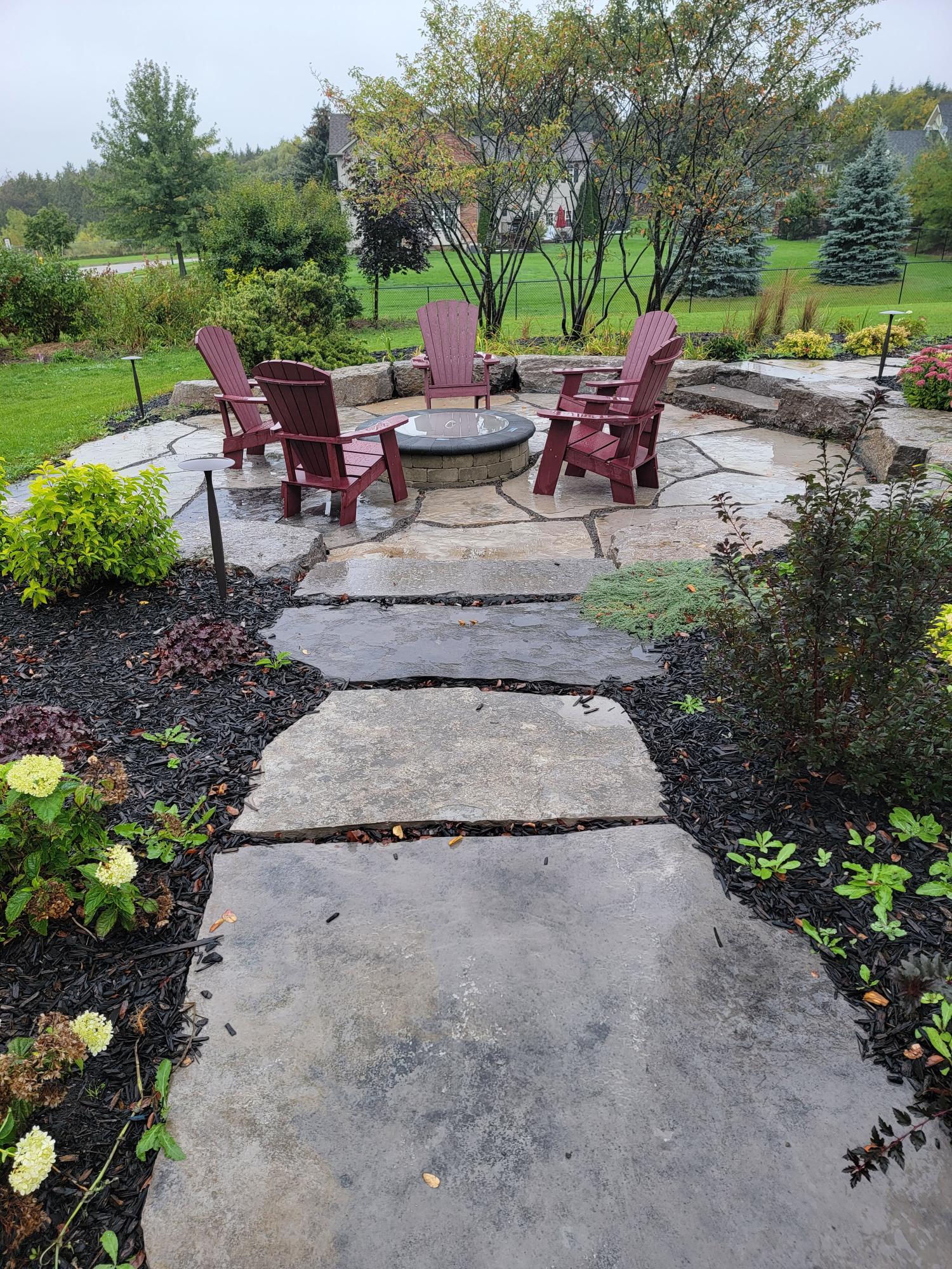 Bring a touch of enchantment to your outdoor space with our bespoke water features and fire pit hardscapes in Barrie. Picture the soothing sound of water gently cascading in your custom-designed water feature, creating a tranquil retreat right in your own backyard. Pair this serenity with the cozy warmth of a beautifully crafted fire pit, perfect for gatherings with friends or roasting marshmallows with the family.